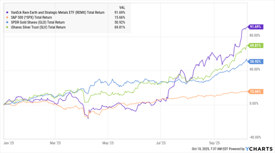 The restrictions apply to any product with rare earth materials equal to more than 0.1% of its value. A separate rule would restrict exports of lithium batteries and related equipment. Thanks to tightening supply and rising prices, the VanEck Rare Earths and Strategic Metals ETF (REMX) has surged more than 91% year-to-date.