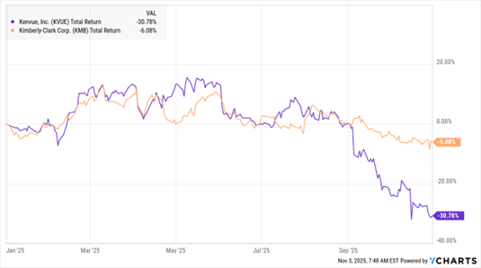 KVUE shares have been sliding for months amid comments from President Trump’s administration linking Tylenol usage to autism. But KMB said the deal would allow it to compete more effectively in high-growth consumer product categories. In addition to Tylenol, Kenvue makes products like Neutrogena lotions, Band-Aids, and Listerine mouthwash. Kimberly-Clark’s portfolio includes Huggies diapers, Scott toilet paper, and Kleenex tissues.